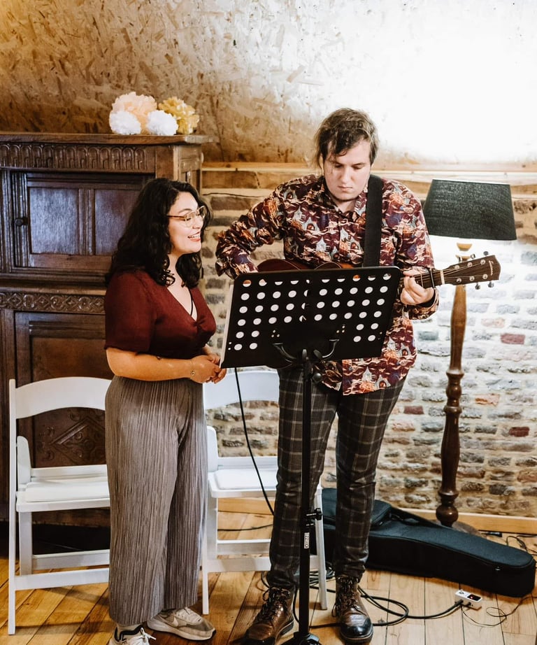 Wij zijn een trouwmuziekduo, bestaande uit zang, gitaar en/of piano, gespecialiseerd in live muziek voor jullie grote dag. Met onze optredens zorgen wij voor een persoonlijke en sfeervolle muzikale beleving die perfect aansluit bij ieder moment van de bruiloft.